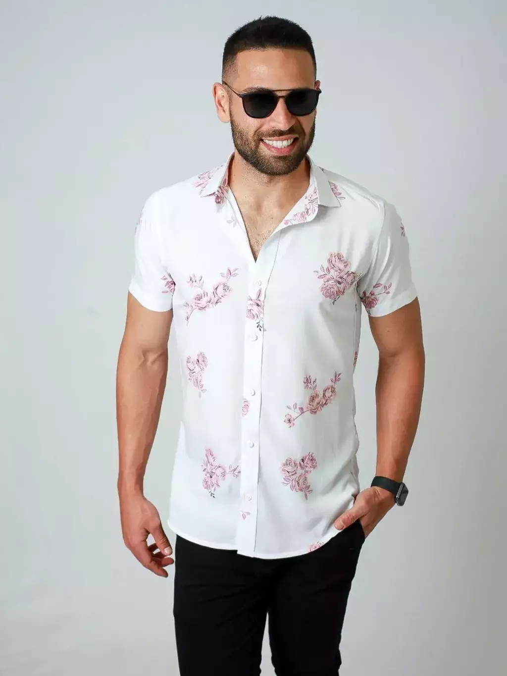 O MODELO TEM MANGA CURTA ,GOLA TRADICIONALE FECHAMENTO POR BOTÕES FRONTAIS.TECIDO VISCOSE